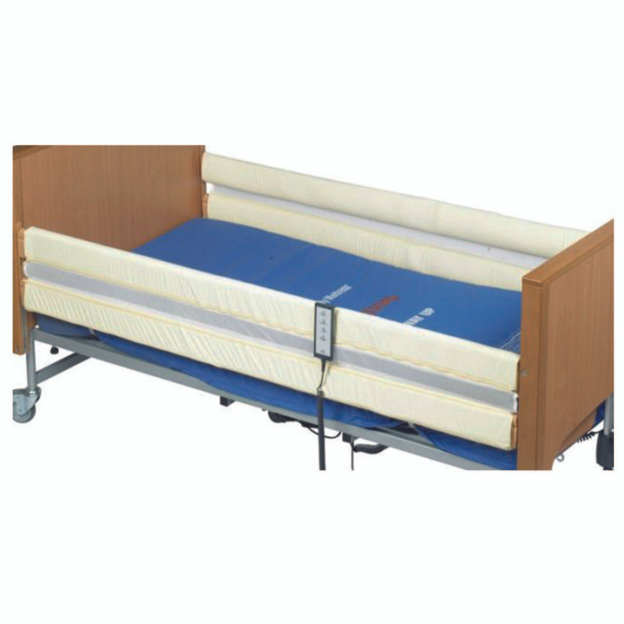 These bumpers are specially made to fit the majority of 2 rail standard profiling beds available and are perfectly suited to the Electra profile bed. Supplied with a velcro fastening they easily applied and removed by a single person. The mesh insert between the rails has the double action of helping to prevent entrapment and increase the patients field of vision. Supplied in a wipe clean cream cover and as a pair to fit one profile bed.